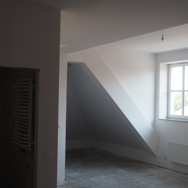 W standardzie ściany łazienki pozostawiono jako zatarte na ostro, natomiast pozostałe ściany i wszystkie sufity zostały wyszpachlowane gładzią gipsową oraz pomalowane farbą, kolorem białym. Instalacja elektryczna, obejmująca domofon zaopatrzona jest w gniazda i włączniki o klasycznym wyglądzie. Do mieszkania doprowadzono przewody pozwalające na odbiór cyfrowej telewizji naziemnej, kablowej i satelitarnej, a przede wszystkim szybkiego Internetu, gdyż budynek posiada przyłącze światłowodowe. Dalsze nowinki to ciepłomierze i liczniki wyposażone w bezprzewodowy odczyt zdalny. Stolarka okienna szklona jest trzyszybowo i wyposażona higrosterowalne nawiewniki okienne. Drewniane okna dachowe wyposażono w podwyższoną oś obrotu, która pozwala na wygodne korzystanie z przestrzeni wnętrza jak i swobodne podziwianie widoków z najwyższego punktu budynku.