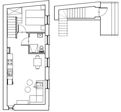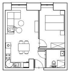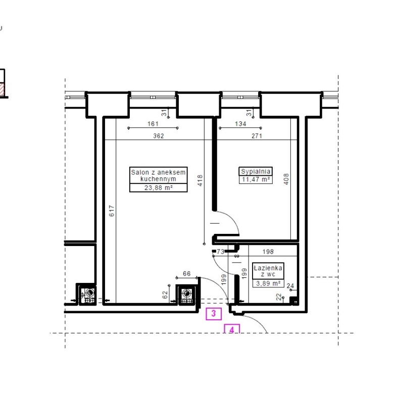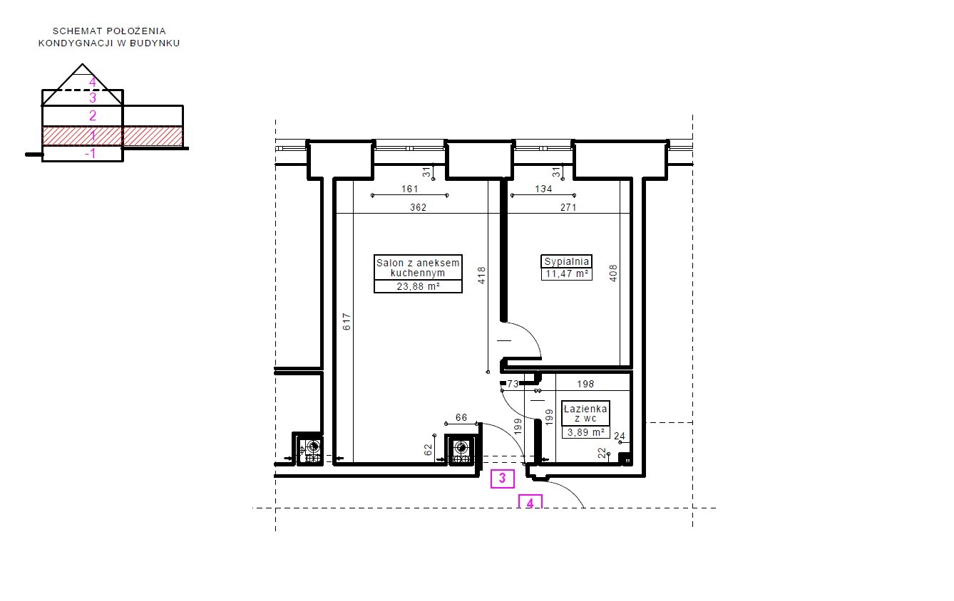 Mieszkanie nr 3 ma charakter niemal czterdziestometrowego apartamentu, składającego się z sypialni małżeńskiej, łazienki oraz przestronnego salonu z aneksem kuchennym. Przestrzeń reprezentacyjna, do której prowadzą drewniane i eleganckie drzwi antywłamaniowe, została wysunięta na pierwszy plan. Salon o wysokości około trzech metrów wypełniony jest dziennym światłem przez okno największe, w całym budynku. Lokal posiada najlepszą ekspozycję, zachodnią, oraz widok na piękny stary kasztanowiec. Po lewej stronie drzwi znajduje się wnęka stworzona z myślą o aneksie kuchennym, w której zapewniono podejścia pod zlewozmywak i zmywarkę, płytę kuchenną i piekarnik oraz lodówkę. Za prawidłowy klimat wnętrza odpowiada wentylacja mechaniczna. Dodatkowo zapewniono osobny kanał do montażu okapu kuchennego. W łazience przygotowano podejście pod kabinę prysznicową oraz zainstalowano duży grzejnik z miejscem na ręczniki kąpielowe.