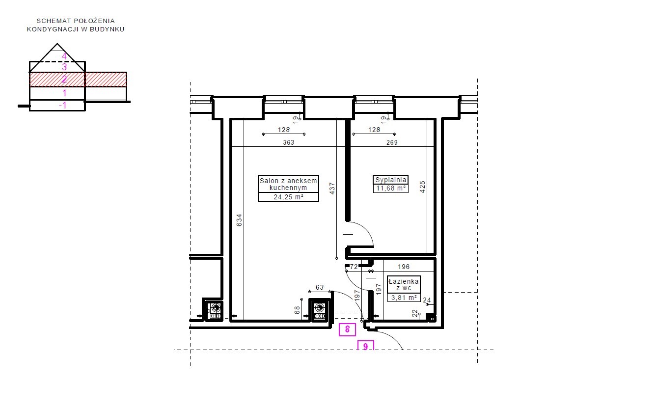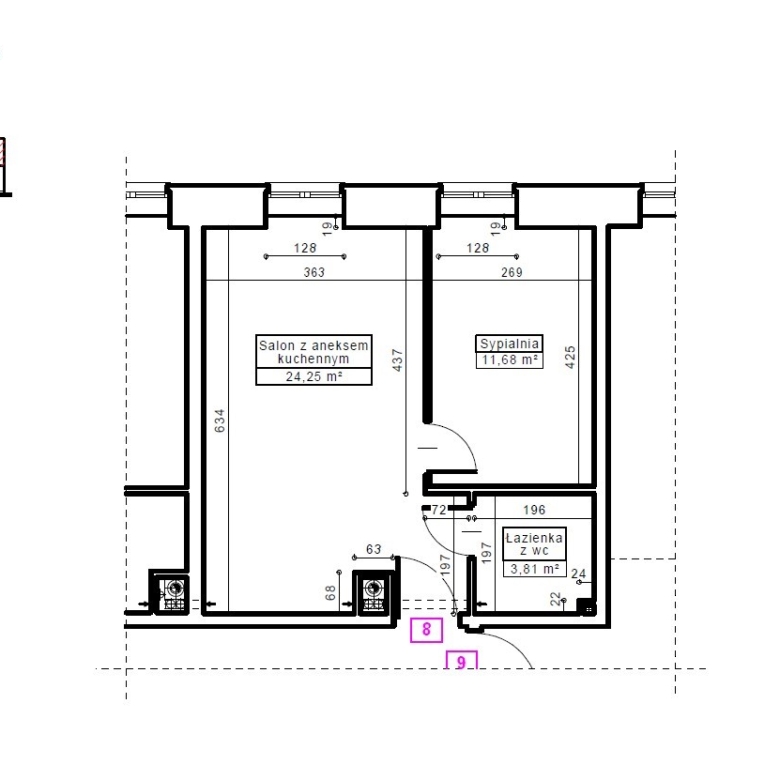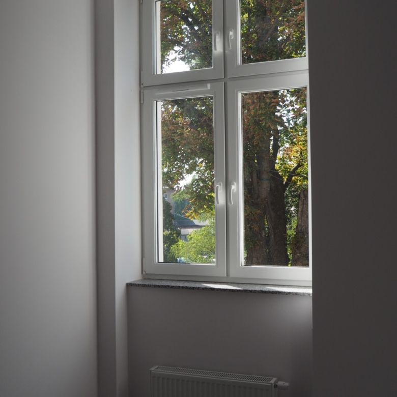 Mieszkanie nr 8 ma charakter niemal czterdziestometrowego apartamentu, składającego się z sypialni małżeńskiej, łazienki oraz przestronnego salonu z aneksem kuchennym. Przestrzeń reprezentacyjna, do której prowadzą drewniane i eleganckie drzwi antywłamaniowe, została wysunięta na pierwszy plan. Salon o wysokości ponad trzech metrów wypełniony jest dziennym światłem przez wysokie okno. Lokal posiada najlepszą ekspozycję, zachodnią, oraz widok na piękny stary kasztanowiec. Po lewej stronie drzwi znajduje się wnęka stworzona z myślą o aneksie kuchennym, w której zapewniono podejścia pod zlewozmywak i zmywarkę, płytę kuchenną i piekarnik oraz lodówkę. Za prawidłowy klimat wnętrza odpowiada wentylacja mechaniczna. Dodatkowo zapewniono osobny kanał do montażu okapu kuchennego. W łazience przygotowano podejście pod kabinę prysznicową oraz zainstalowano duży grzejnik z miejscem na ręczniki kąpielowe.